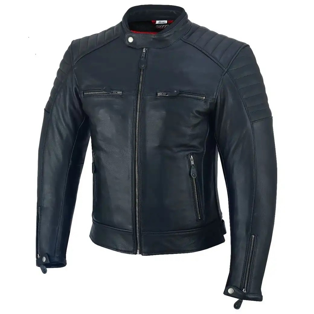 Geacă moto din piele naturală SM Racewear Curtis, pentru bărbați, cu protecții CE, căptușeală detașabilă și croială modernă, oferă siguranță, confort și stil atât pe motocicletă, cât și în utilizarea zilnică.