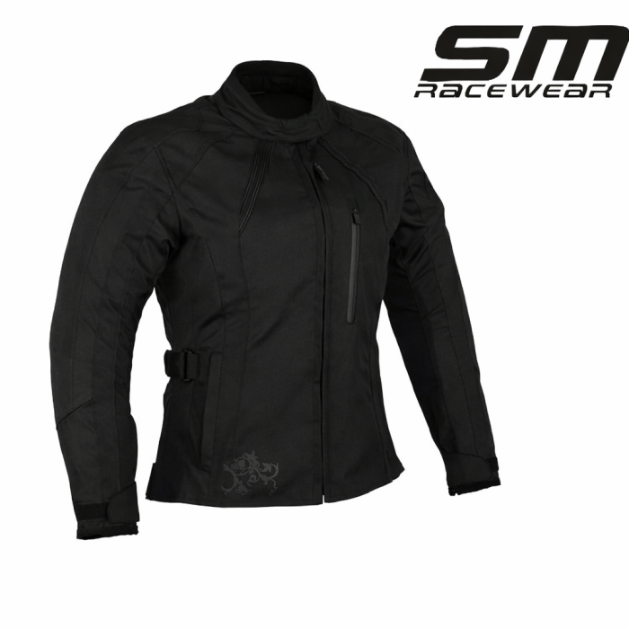 Geacă moto textilă de damă SM Racewear Ana Lady, concepută pentru 3 sezoane, impermeabilă și ventilată, cu protecții CE și croială feminină, ideală pentru confort și siguranță pe tot parcursul sezonului moto.