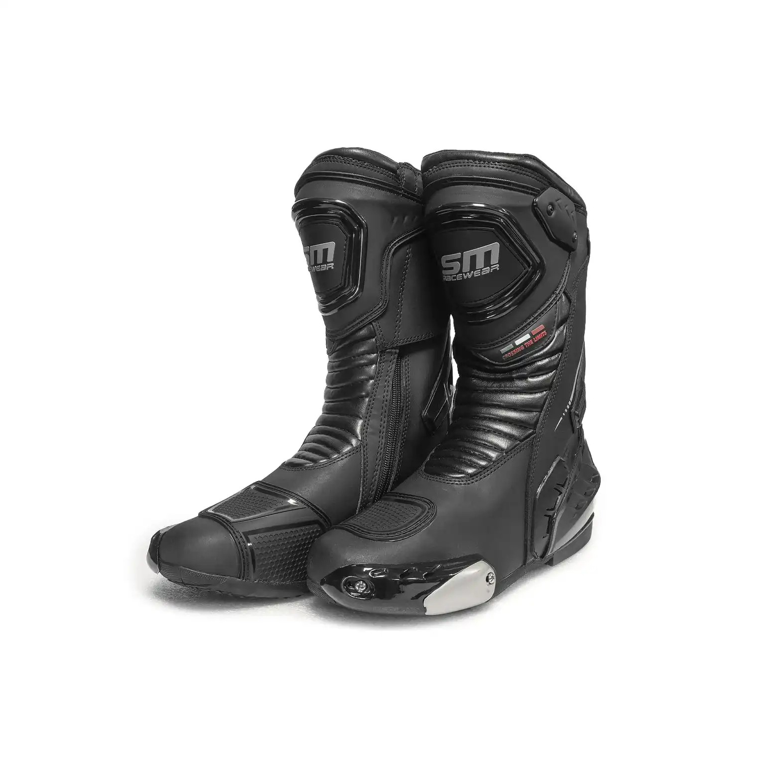 Cizmele moto SM Racewear Blade sunt construite din piele naturală și materiale compozite, oferind protecție completă în zonele esențiale și un nivel ridicat de confort. Designul lung, zonele flexibile fac potrivite pentru utilizare extinsă, menținând în același timp stabilitatea și siguranța necesare pentru condus.