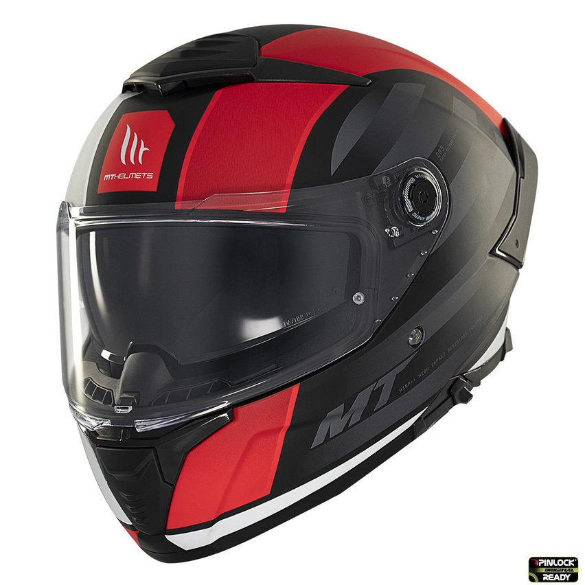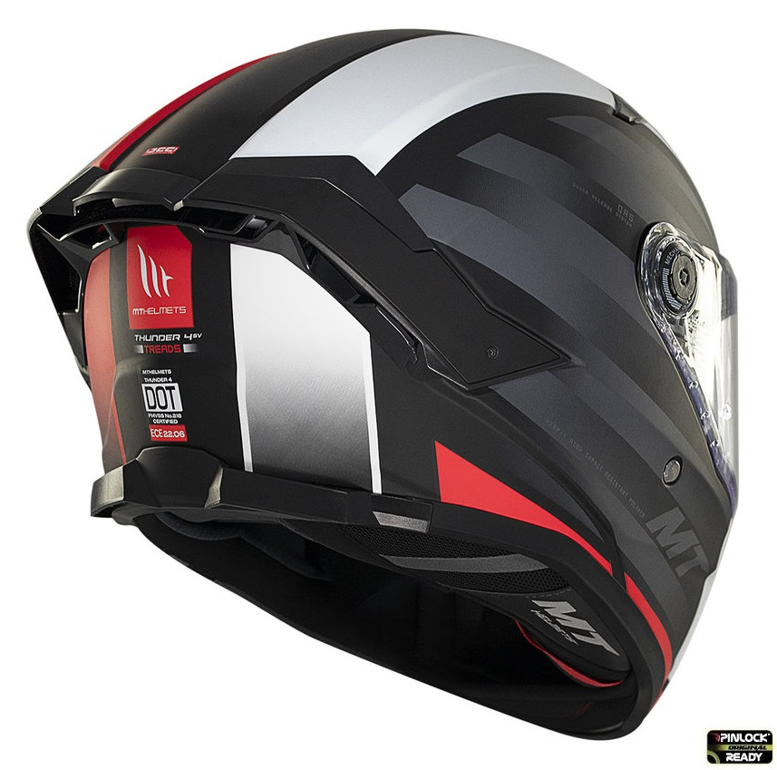 • lansarea modelului Thunder 4 SV reprezinta un punct de referinta pentru MT Helmets, datorita faptului ca acest model este cel mai bun ambasador al brandului, din punct de vedere al caracteristicilor si specificatiilor: - noul model Thunder 4 SV este prima casca integrala cu ochelari de soare integrati omologat pe noul standar european de siguranta ECE 22.06; - este un model de casca sport-touring, care incorporeaza noul mecanism de viziera tip MT-QVSS, un sistem patentat de MT si care permite shimbarea extrem de rapida a vizierei; - ca rezumat, noul model Thunder 4 SV este cea mai buna alegere din portofoliul MT , ca raport pret-calitate.