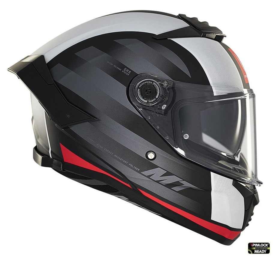 • mecanismul MT-QVSS este patentat de MT si permite utilizatorului sa ataseze sau detaseze viziera foarte rapid si confortabil, fara a da casca jos din cap;