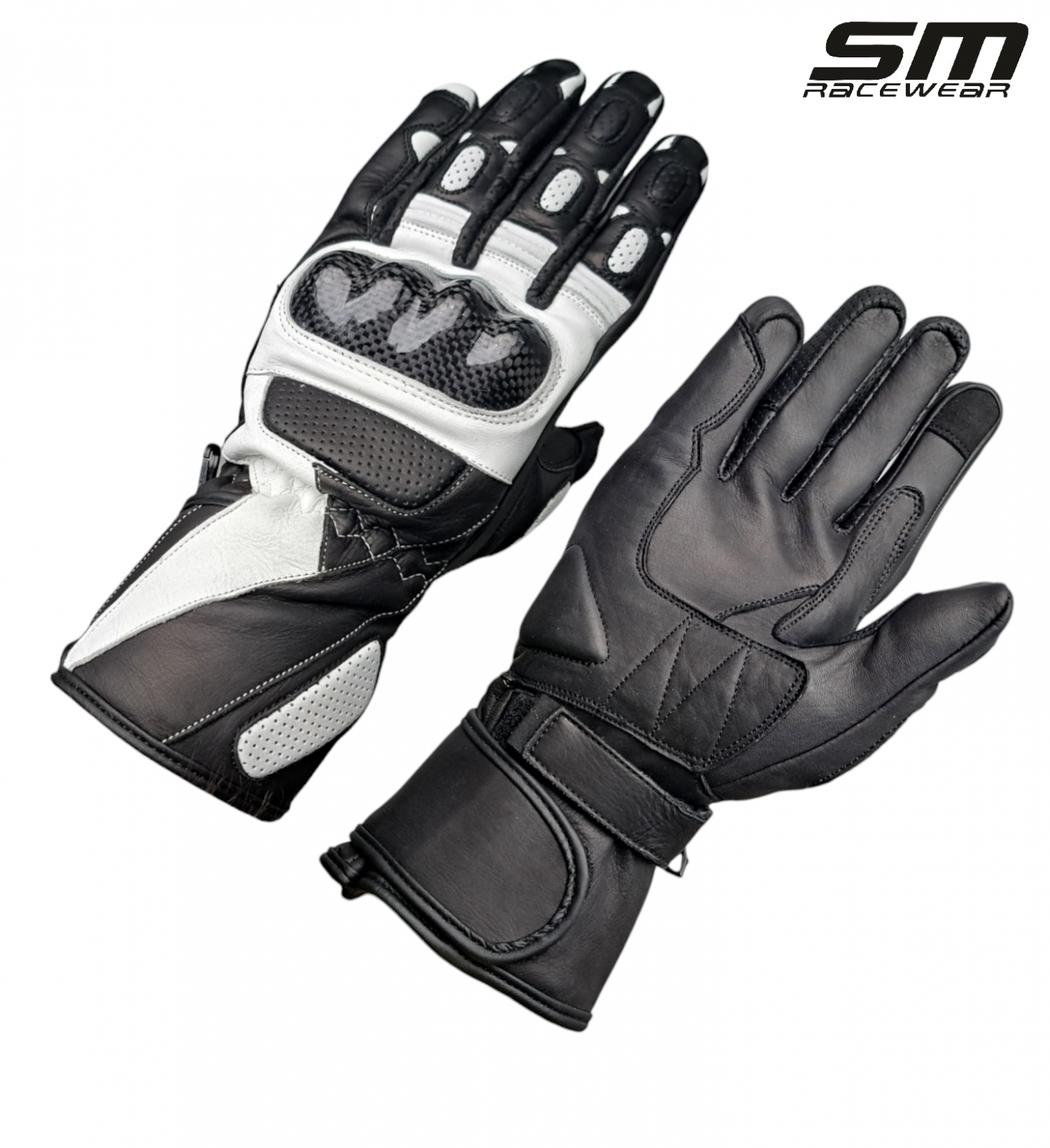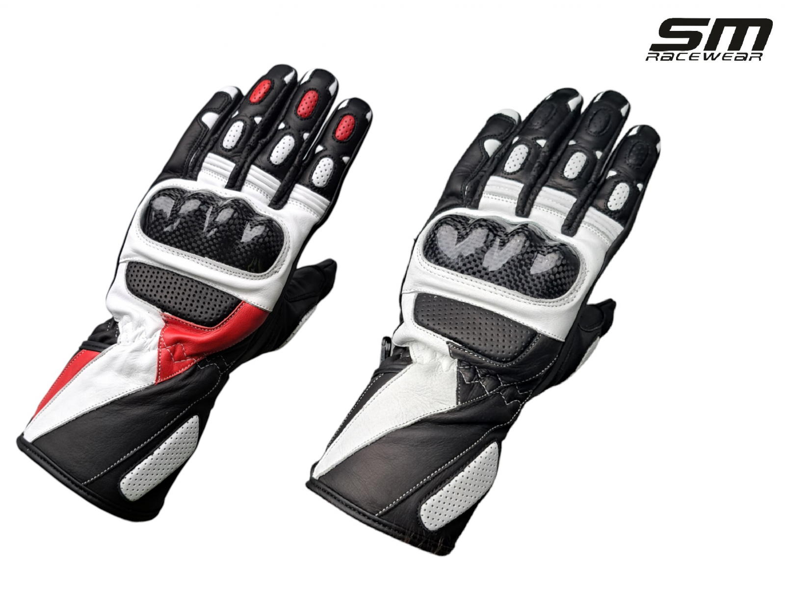 Manusi moto din piele naturala SM Striker Long - Alb&Rosu sau Alb&Negru :