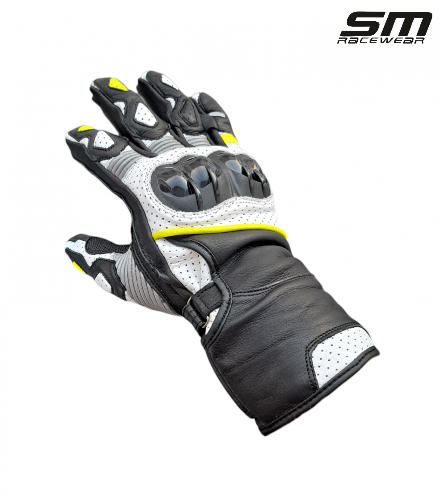 Manusi moto din piele naturala - SM Racewear Alp, in 3 variante de culori Alb-Rosu, Alb-Neon sau Negru complet: